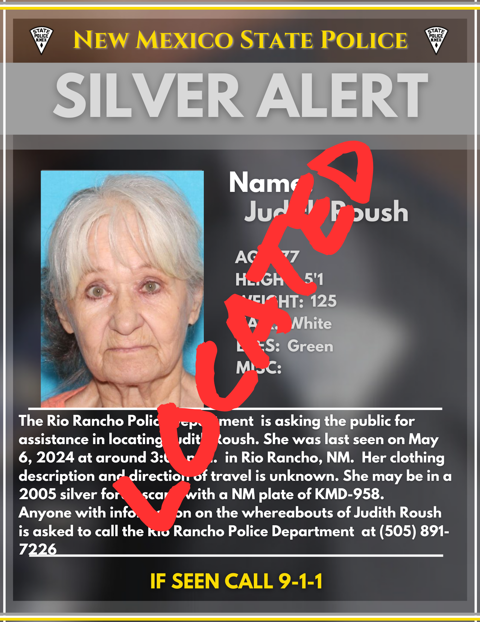 Update: Cancel Silver Alert- Rio Rancho Police Department