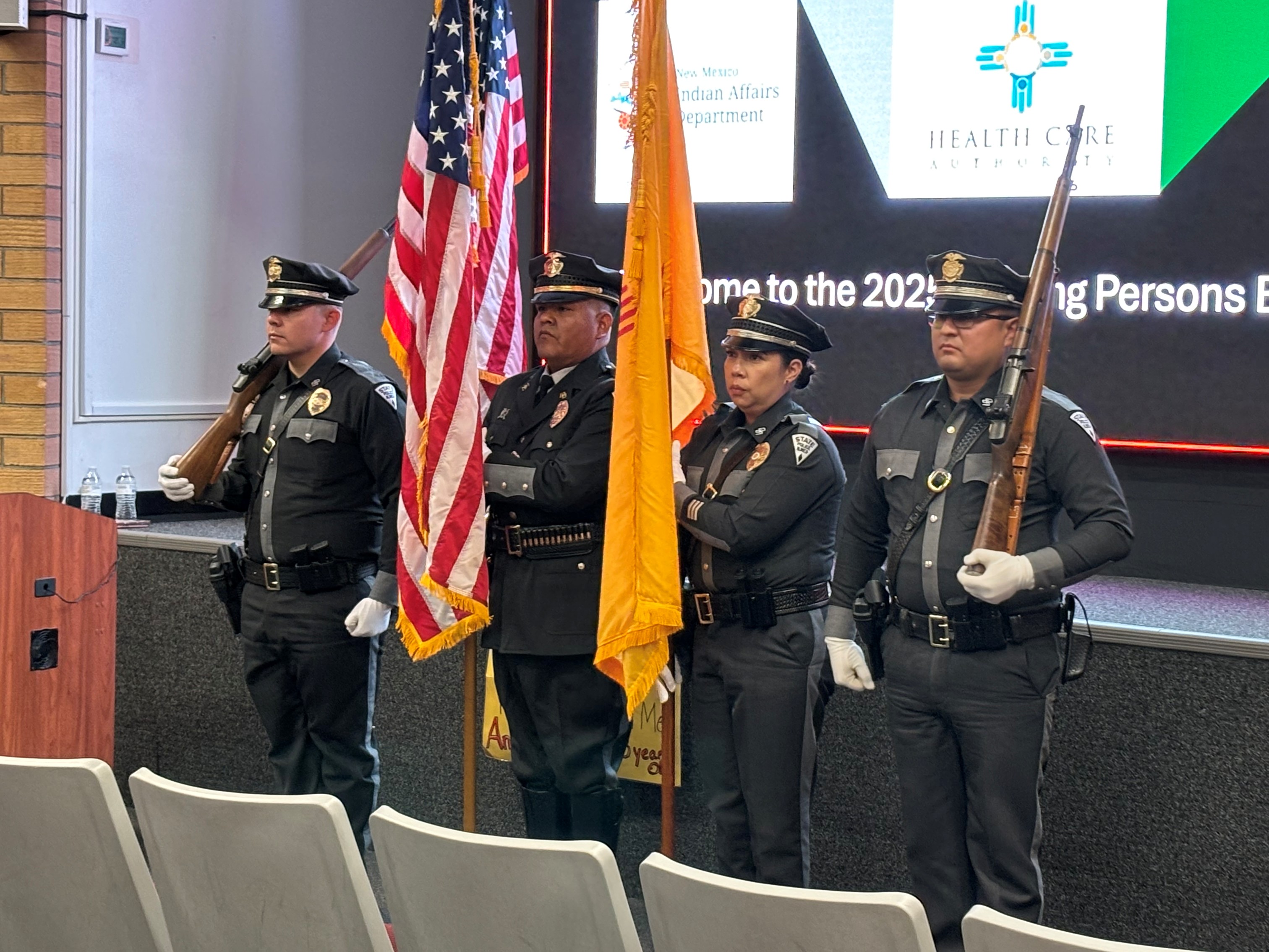The New Mexico State Police Honor Guard performed at the opening ceremony of “Missing in New Mexico.”