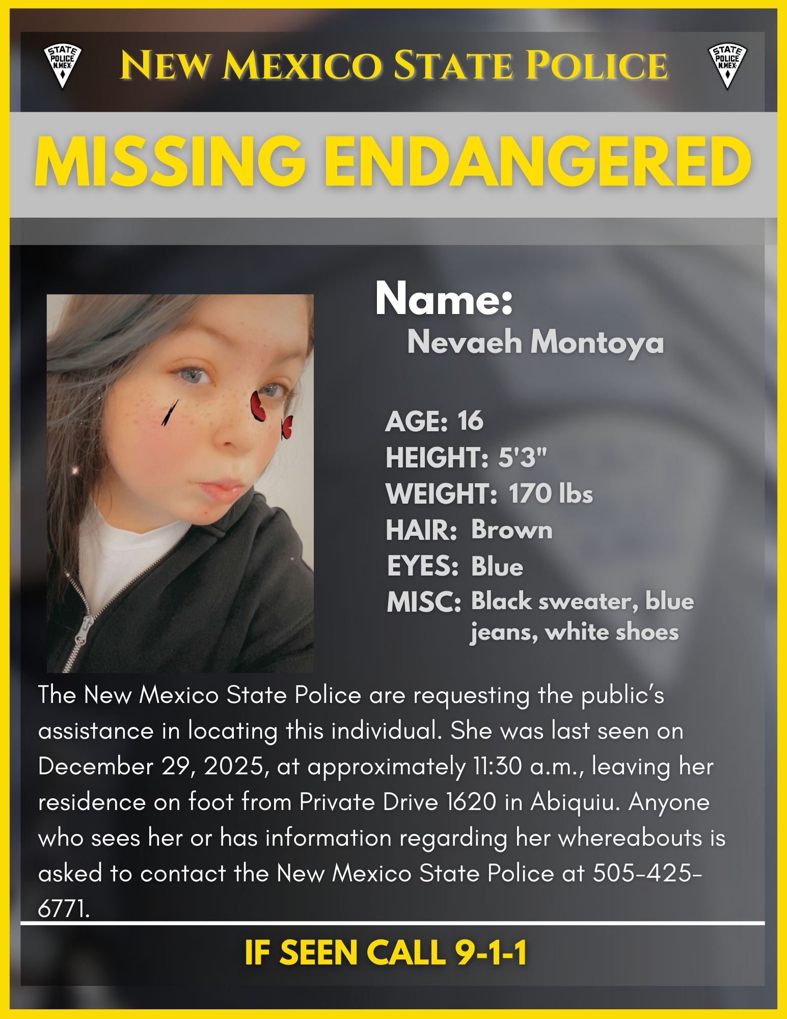 Missing Endangered Alert-NMSP D7, Espanola