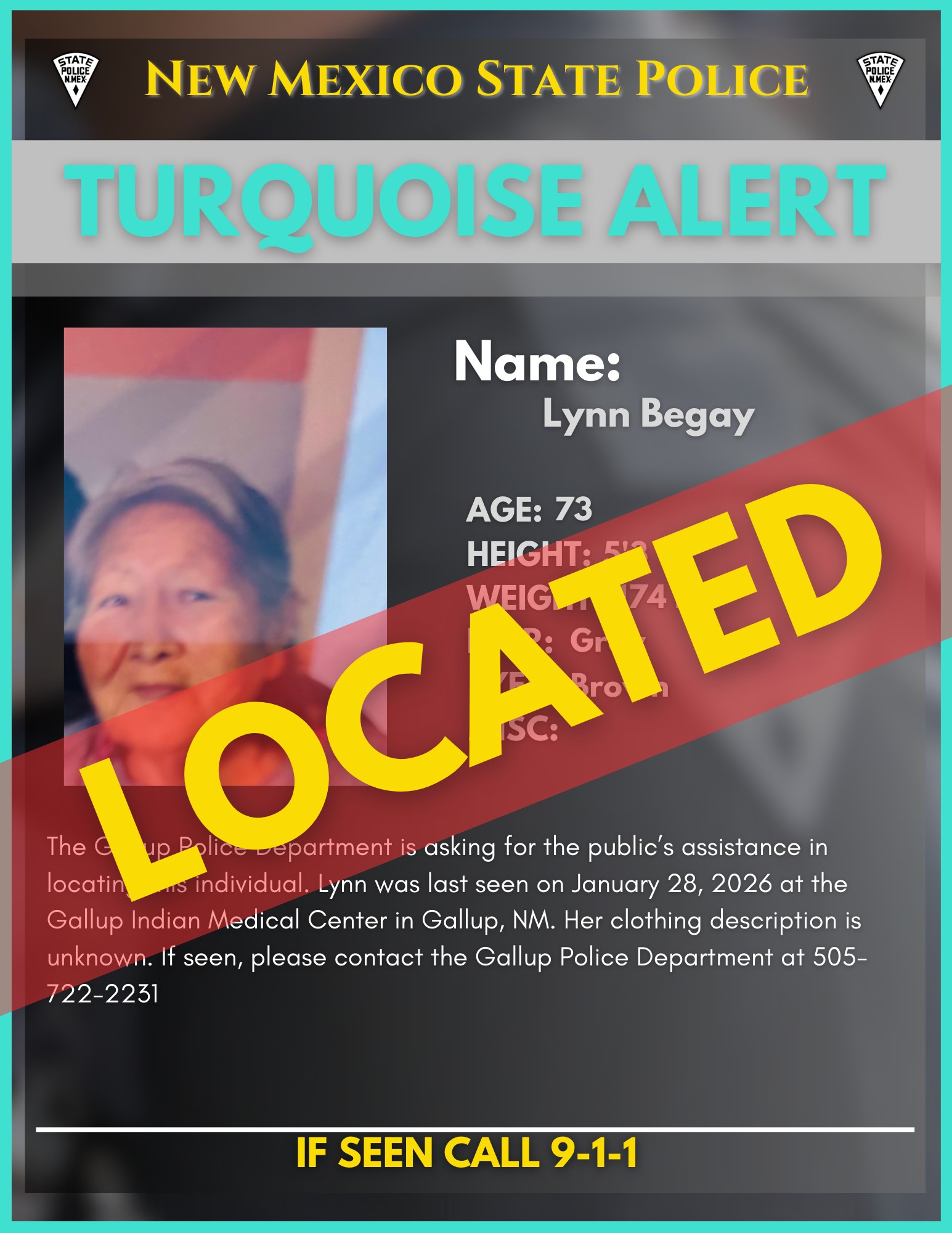 Update: Cancel Turquoise Alert- Gallup Police Department