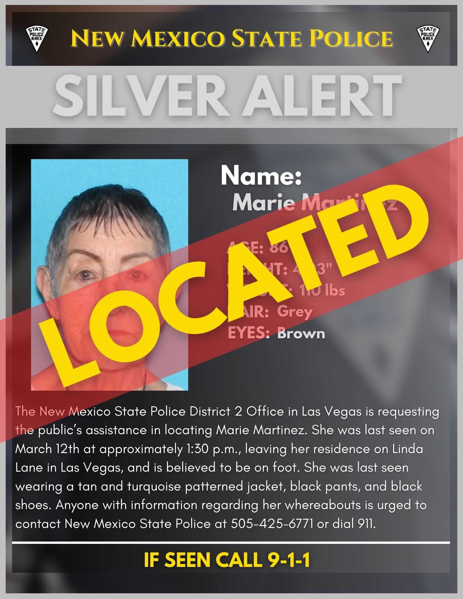 Update: CANCEL Silver Alert-NMSP District 2 (Marie Martinez)