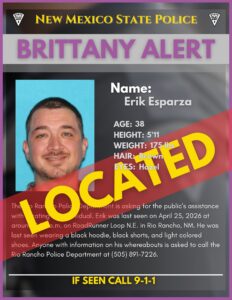 Update: Cancel Brittany Alert- Rio Rancho Police Department- Erik Esparza